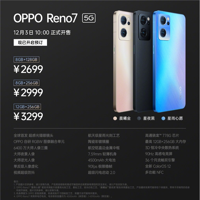 售价方面,Reno7
