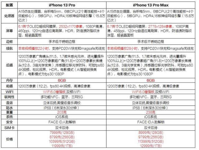iPhone13Pro和iPhone13Pro max之间的差距