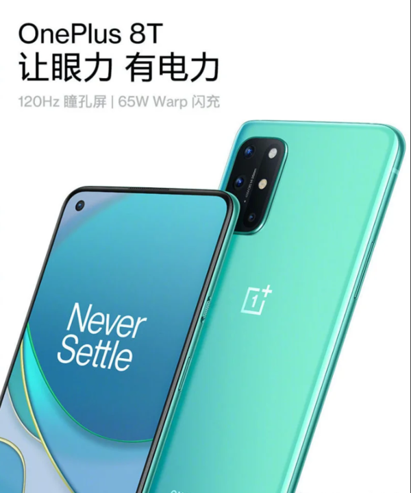 一加8t: 首次使用 65W 快充技术,20 分钟就可以将 4500mAh 电池充到 70%