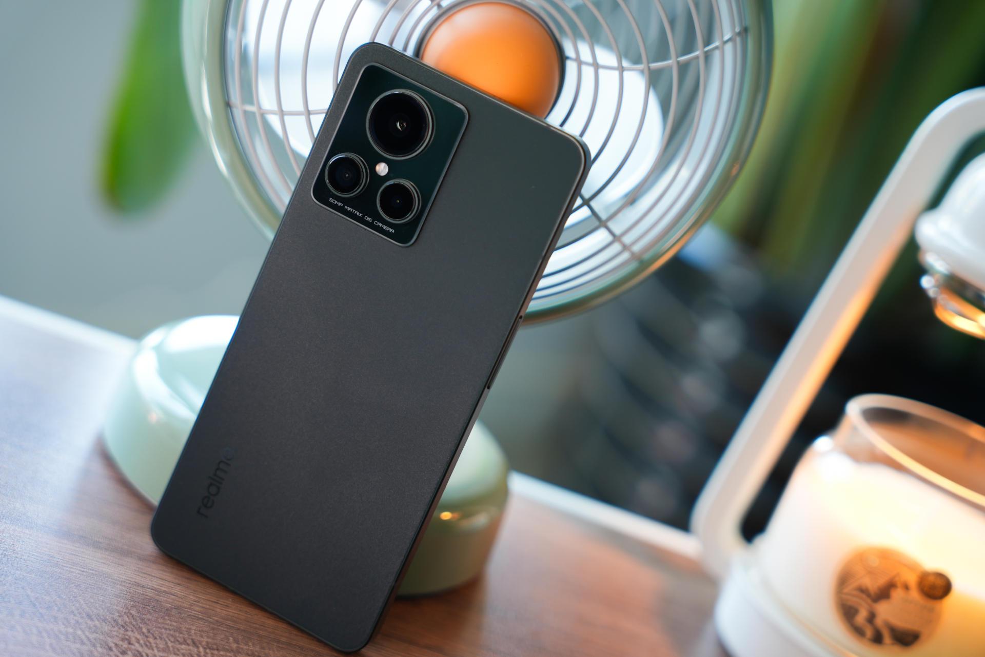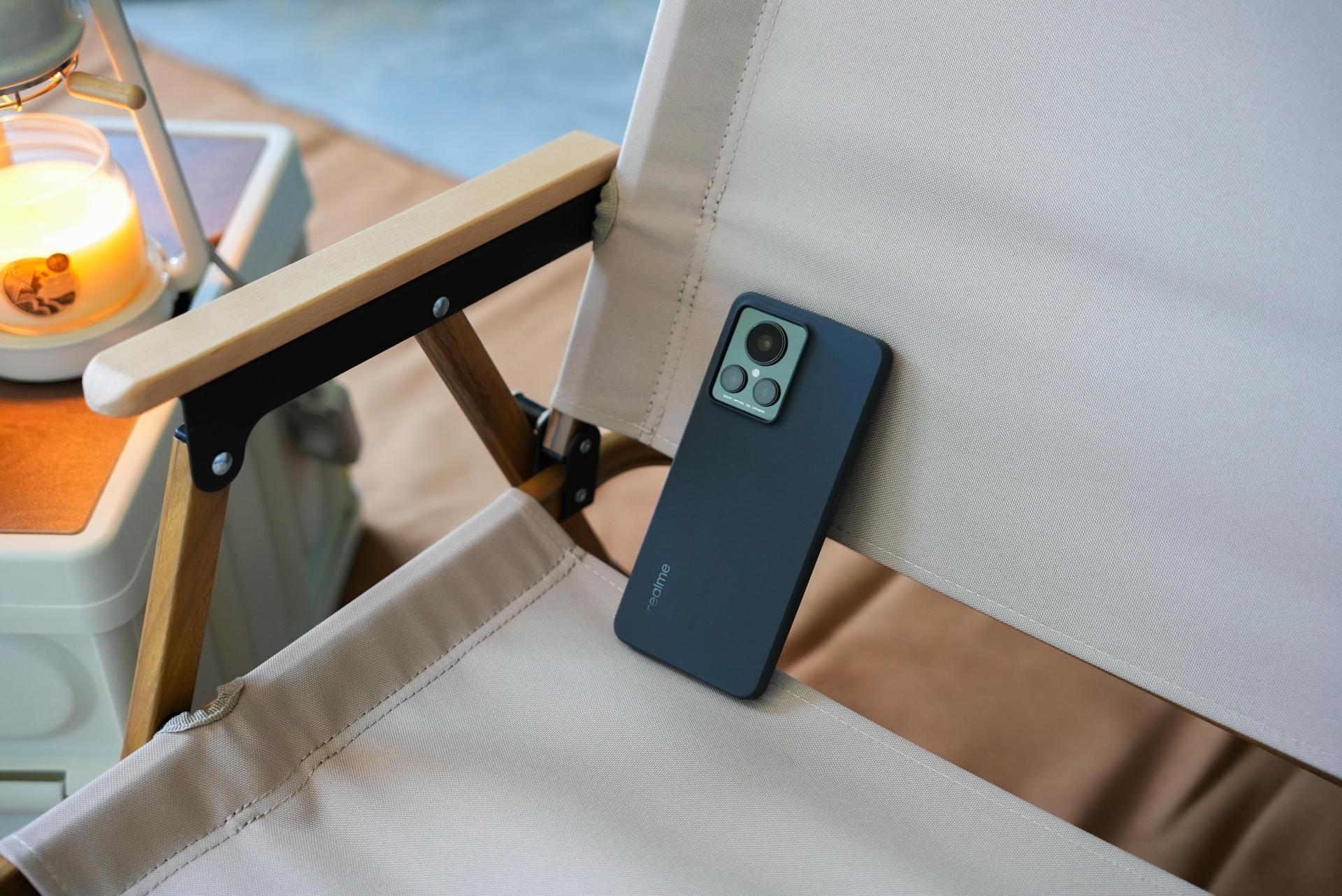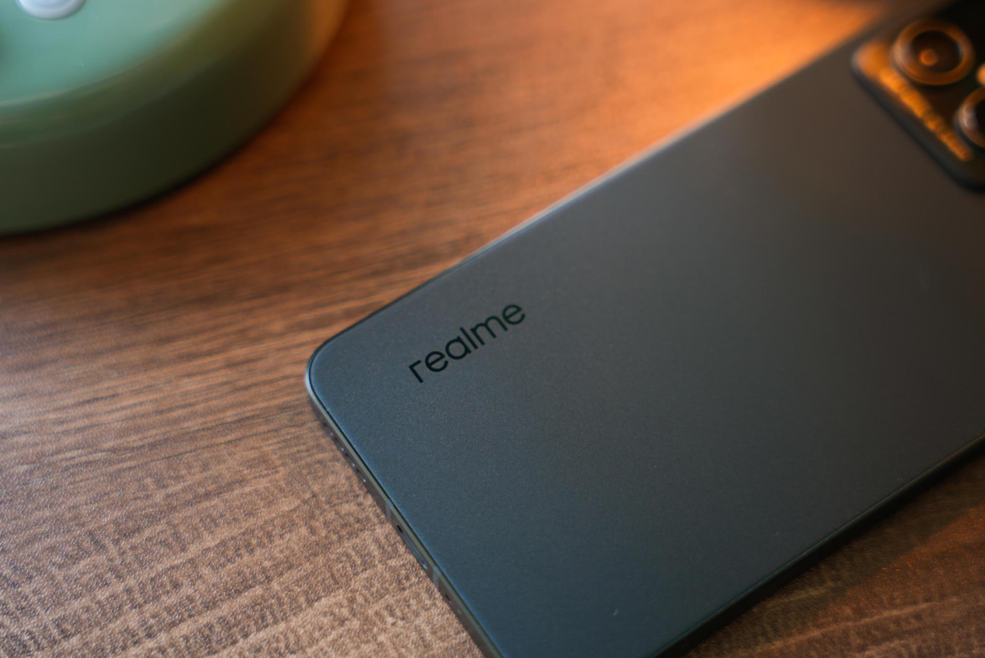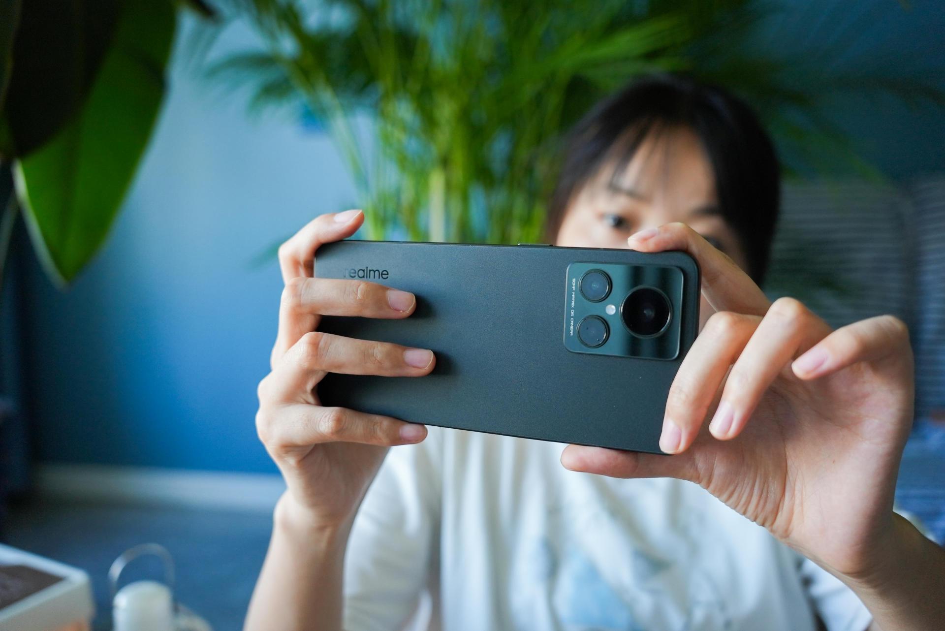 在实际上手这个「苍岩」配色后,我觉得这个手机的手感做工算得上手机的第一梯队,背面摸上去就像在抚摸一颗鹅卵石,手感细腻且不留指纹,这次realme将AG磨砂玻璃做出了一种新高度;直角中框边缘做了倒角,没有割手感;摄像头模组采用了两段式凸起,过渡更为平滑,看着也不是那么突兀,品字形的排列方式,看着既美观也有辨识度。