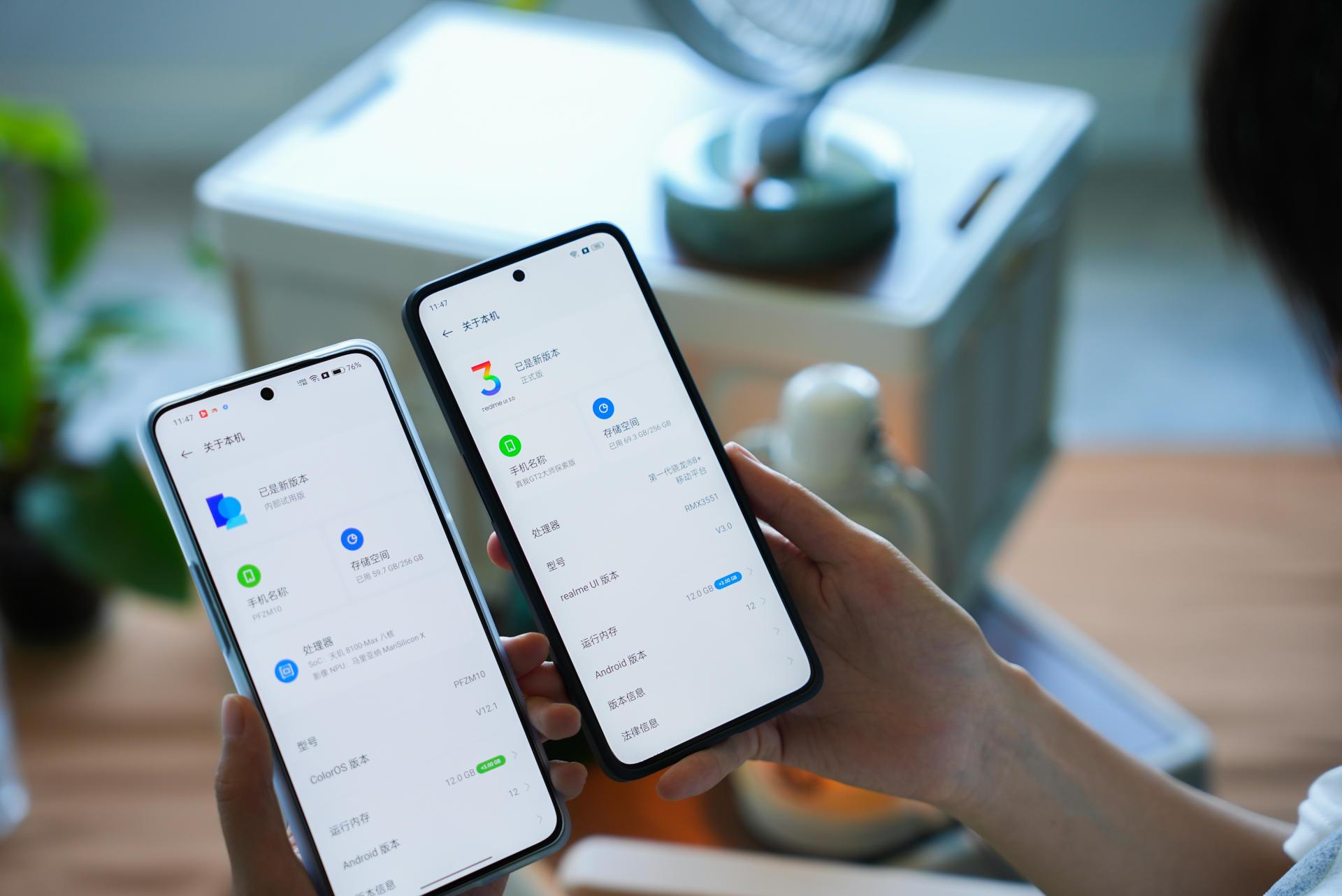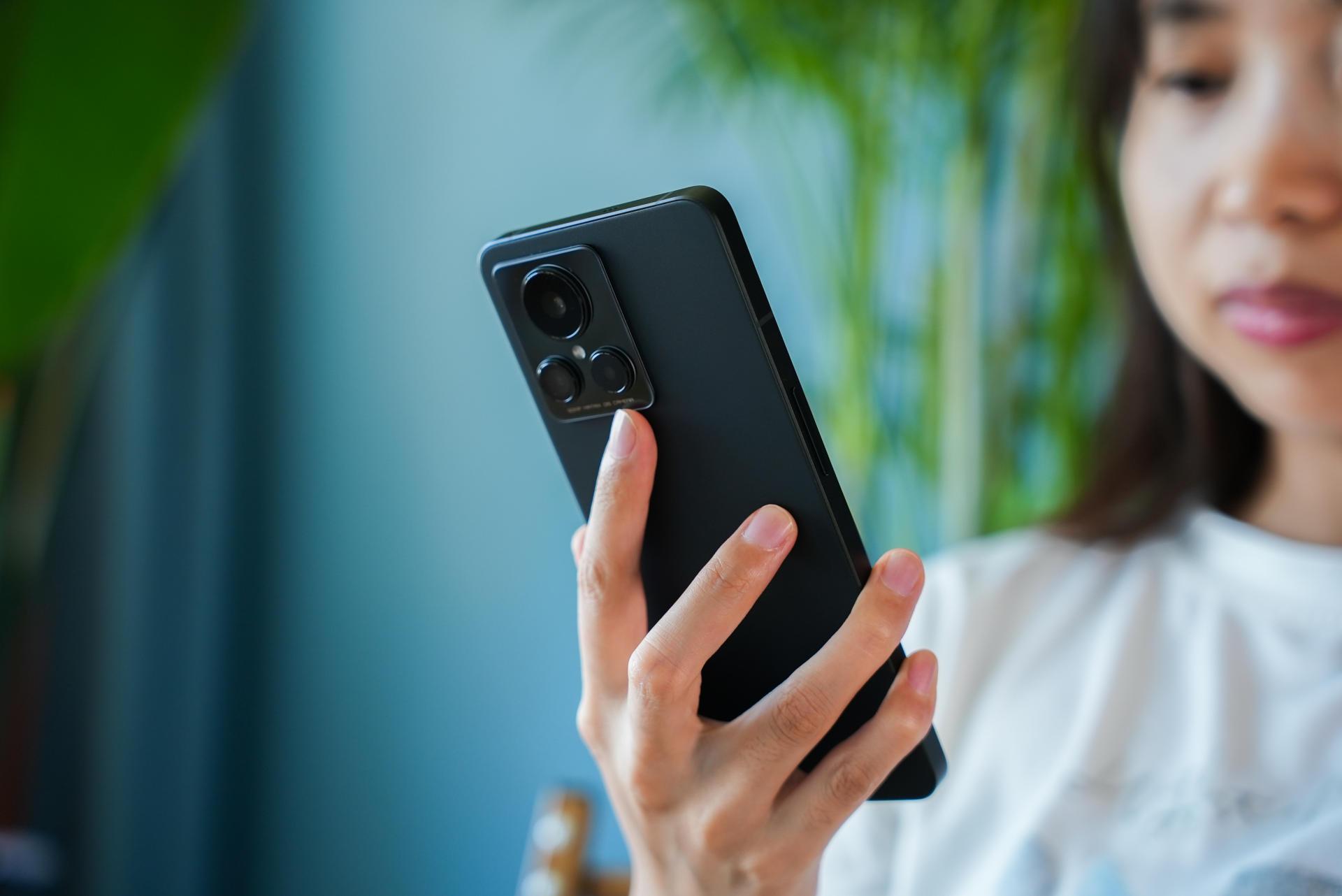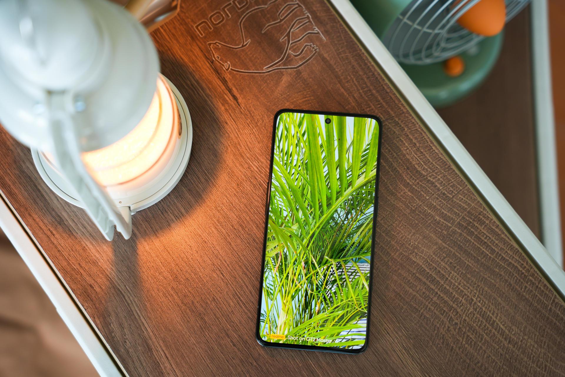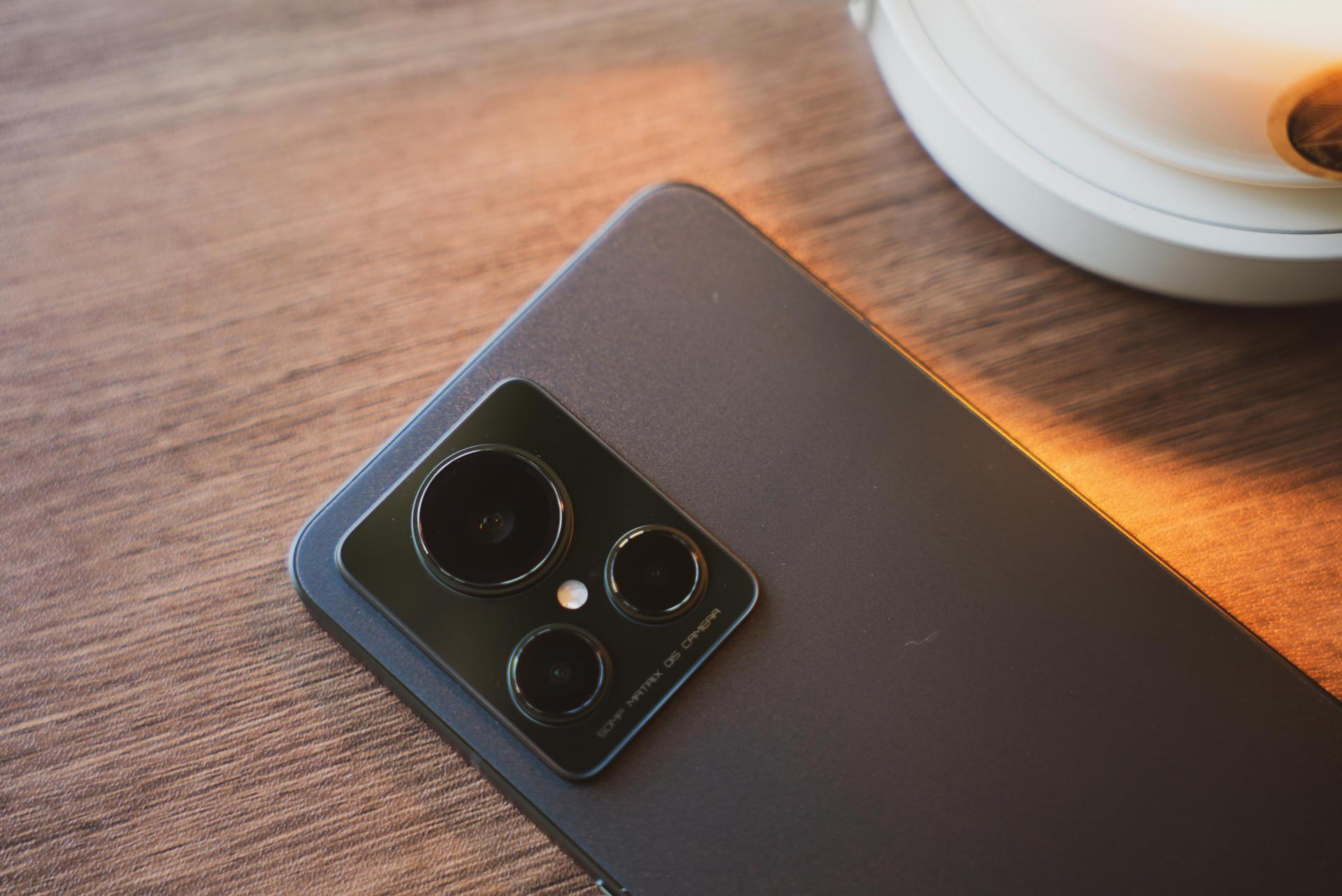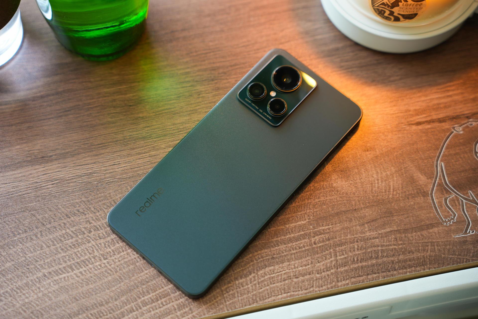 在实际上手这个「苍岩」配色后,我觉得这个手机的手感做工算得上手机的第一梯队,背面摸上去就像在抚摸一颗鹅卵石,手感细腻且不留指纹,这次realme将AG磨砂玻璃做出了一种新高度;直角中框边缘做了倒角,没有割手感;摄像头模组采用了两段式凸起,过渡更为平滑,看着也不是那么突兀,品字形的排列方式,看着既美观也有辨识度。