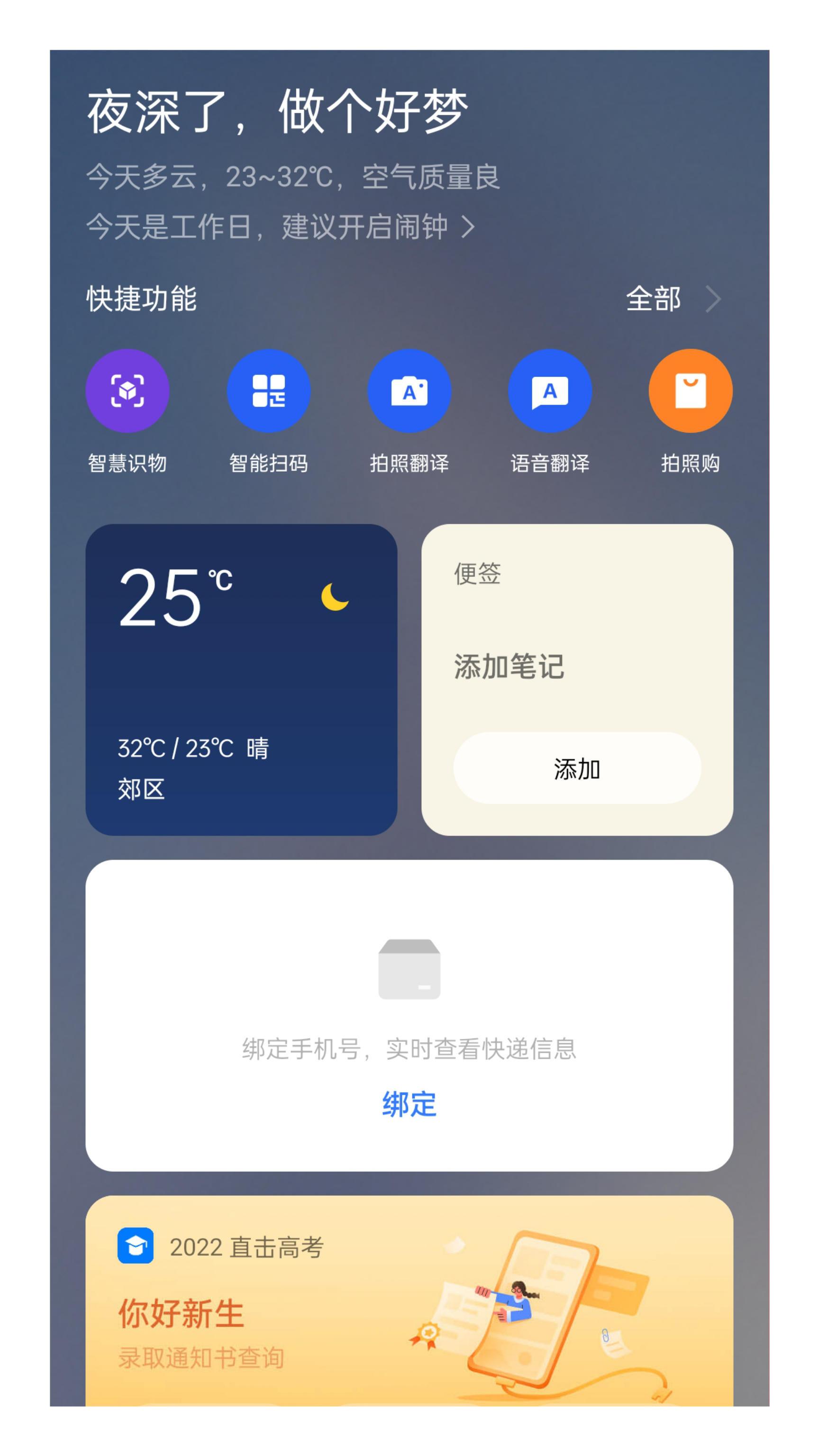 2.负一屏的功能整合,做到了“千人千面”的私人订制,可以自定义小卡片组件,设置快捷功能,快捷显示健康码,甚至还能紧跟时事的设置高考查分等相关应用组件。操作融入日常生活,用好这个负一屏,可以极大的方便自己的日常生活。