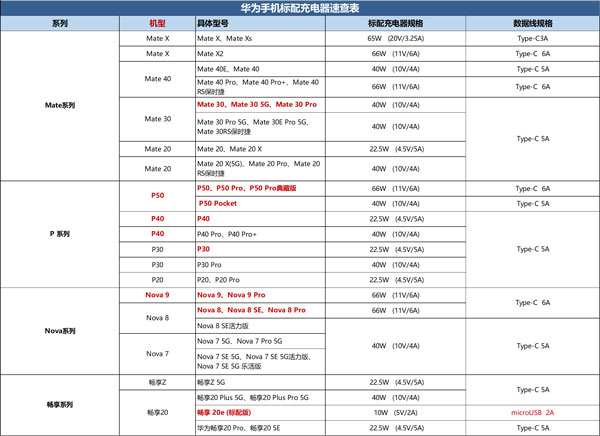 华为手机或平板会根据充电器及数据线规格自动适配电流,是可以向下兼容的,例如11V/6A的充电设备可以向下兼容10V/4A、9V/2A等充电功率较小的充电设备。