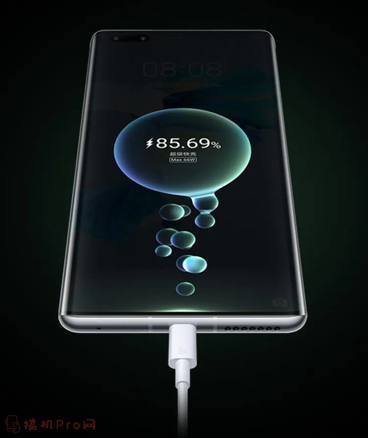 在麒麟9000芯片的强大加持,此次mate40系列在续航的表现依旧强劲,华为在mate40pro上升级使用66W有线超级快充,据说可以在半个小时内充至85%电量,并配有50W无线超级快充。