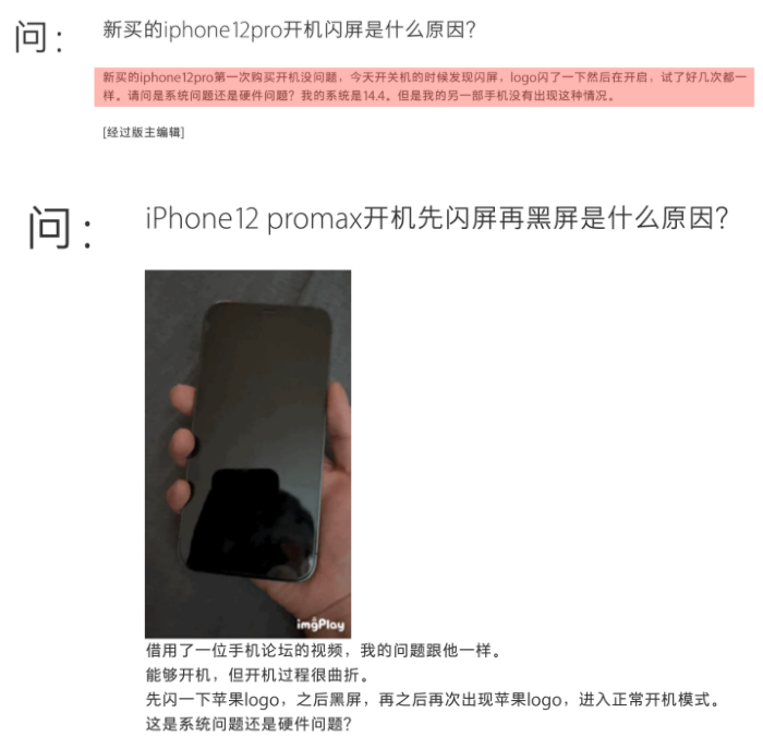 通常会导致iPhone 12开机闪一下、开机先闪屏隔几秒又正常开机,这情况在iPhone 12、iPhone 12 Pro Max都有用户发生,这灾情从2021年1月开始大量出现在Apple官方社区,而且有问题的不仅只有一人。
