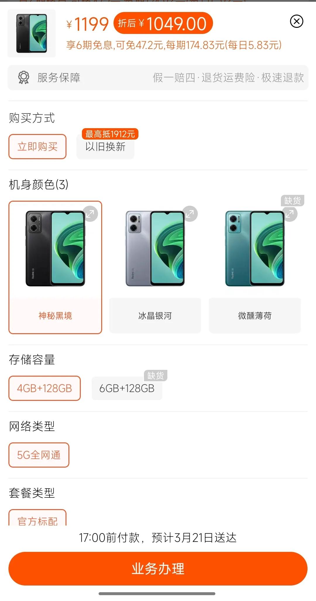 该机提供4 128GB、6 128GB两个版本,有三种配色可选择,分别是神秘黑境、冰晶银河、微醺薄荷,支持5G网络。