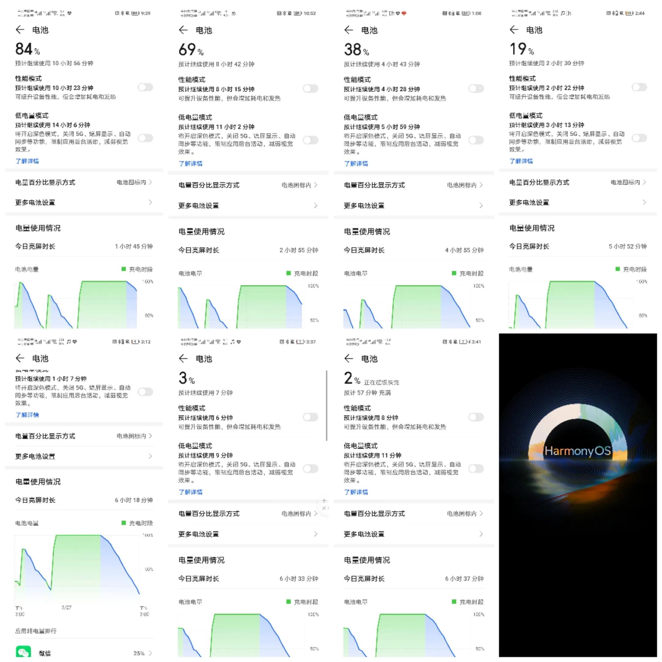 电池续航大家可以看图,很直观的,我充满从百分百用到百分之2,然后最后的死亡30秒,关机,刚开始得用到84得时候我以为能用十个小时,我想着这也太顶了,结果到了百分之五十以后就越来越快了,最后六个半小时